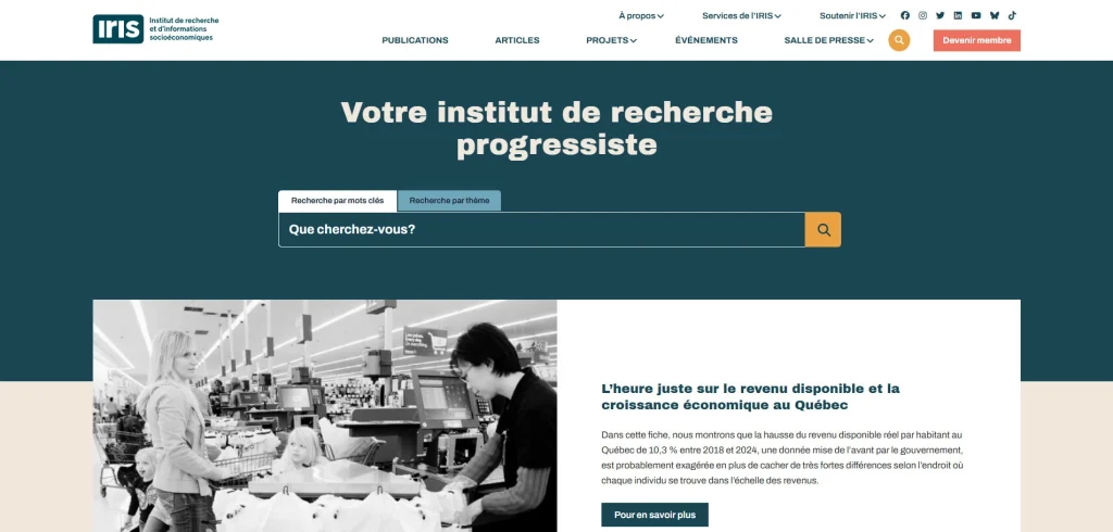 Site de l’Institut de recherche et d’informations socioéconomiques. J’ai travaillé sur la mise en place...